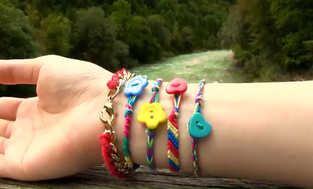 To make this bracelet you need, a small piece of cardboard, a scissor, a button, one pencil, any rounded object and 4 colors of embroidery string, that’s it. To make the bracelet, follow the steps-