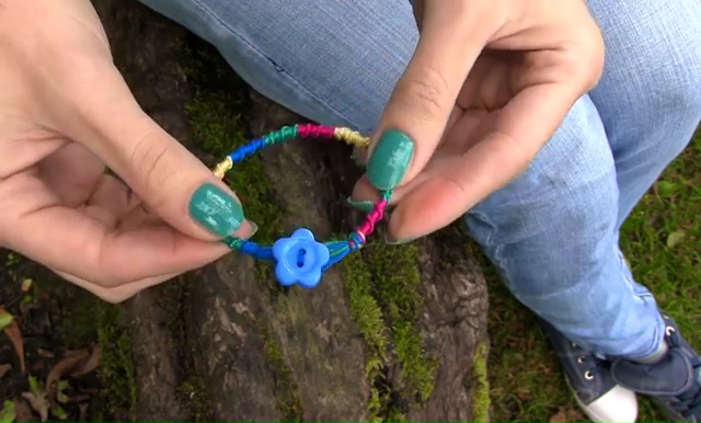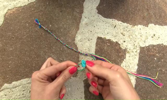 - Sew the button at the end of your bracelet to get the bottom closer, tie some more knots on it to make secure it in place. Cut the excess string out and your bracelet is prepared to use.