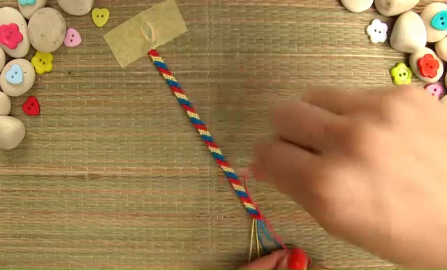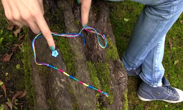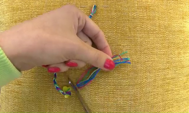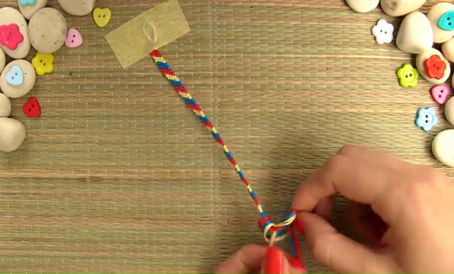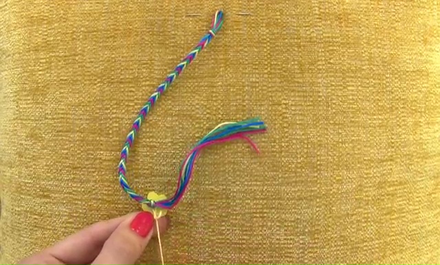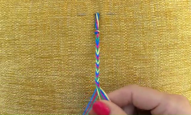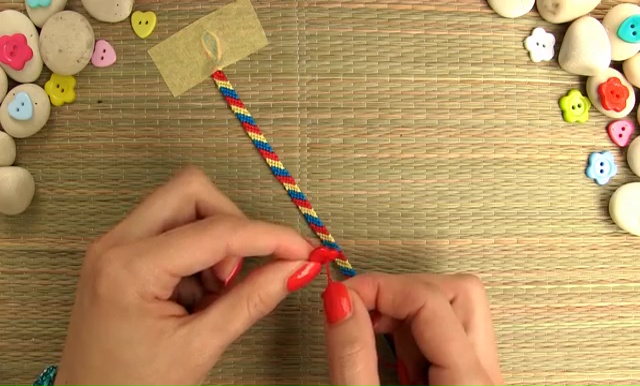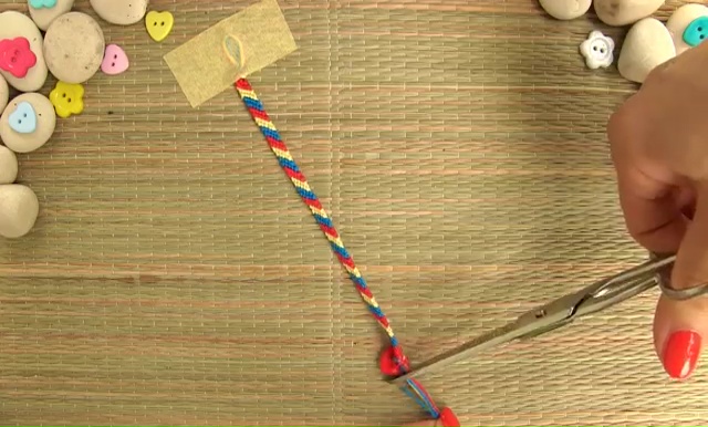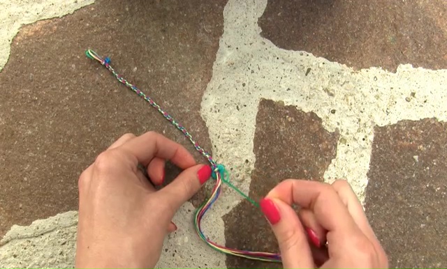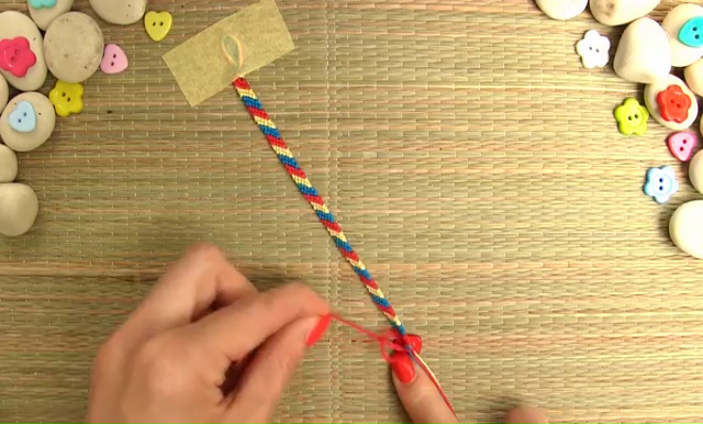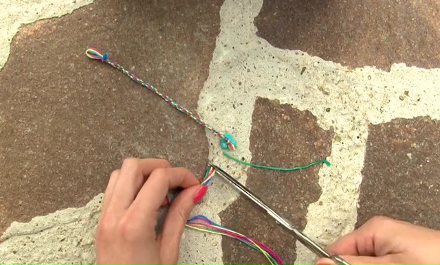 - When your bracelet is long enough, make a final knot at the end to secure the weaving.