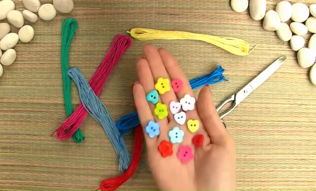 To make such item you require some piece of strings, scissor, and button.