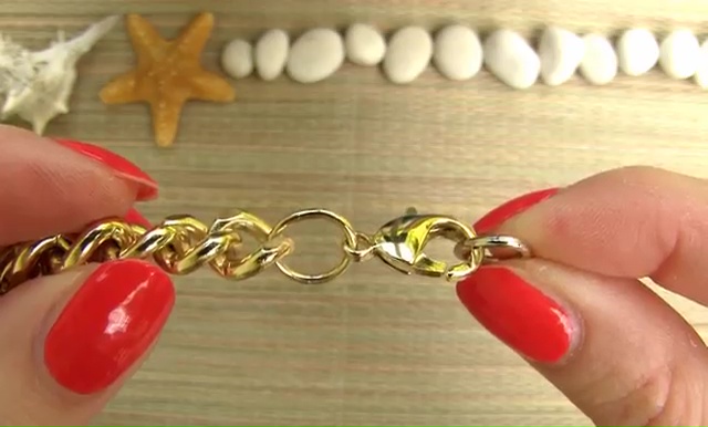 - Open one-sided ring of that clasp, add one part of your chain and attach it again. Then do the same thing with the other clasp ring as well! See once, whether it fits your wrist perfectly or not before going to the next segment.