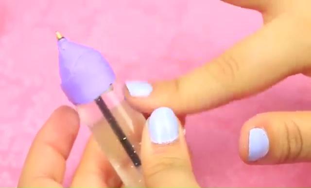 - Then, take the play dough which must be made from clay to work appropriately. Choose nice colored dough, add some baby oil and stick the dough at the head portion of your liquid pen. Give the dough a perfect shape of a pen’s cap and when its dry a bit, you can use this extremely trendy glitter liquid pen to write some wish or greeting for your personal notes.