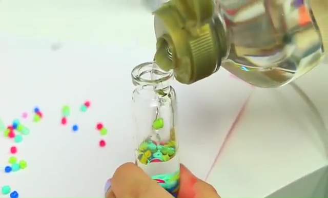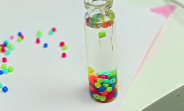 To prepare this cute pattern in liquid pen category you need a glass container again, some white corn syrup, a packet of Orbeez, clay, dough, rifle, and the container cork.