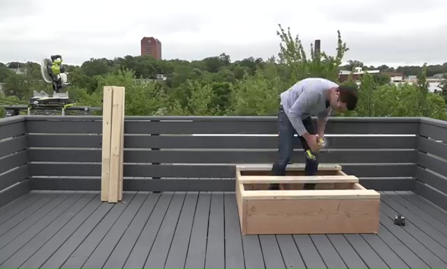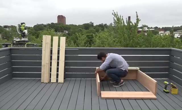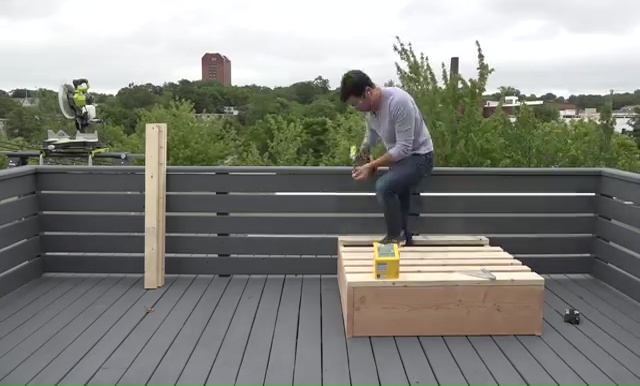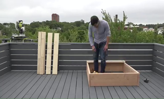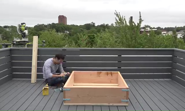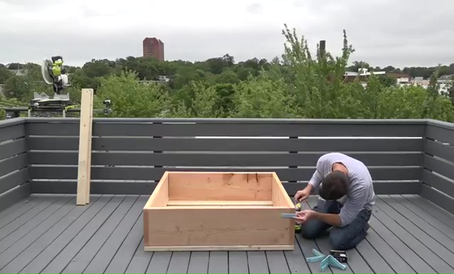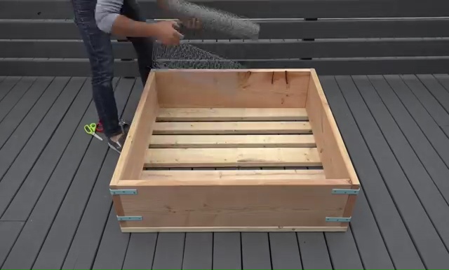 - Next step is to set those 2x4s lumbers over the box and attach them with some screws again through that drilling Make sure that you are leaving at least 2 inches gap in between those pieces for drainage.