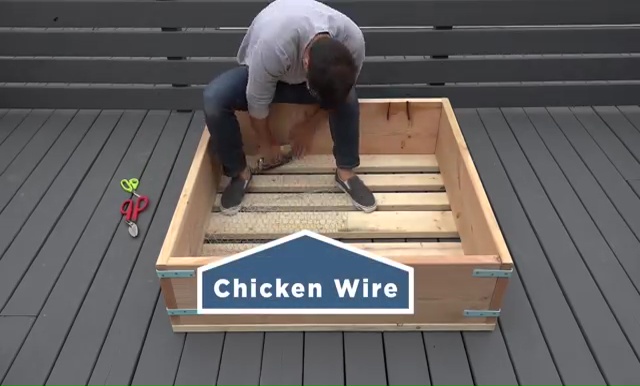 - After that, turn the upside down of the box, take two equal pieces of chicken net and set them inside the box through the entire bottom.